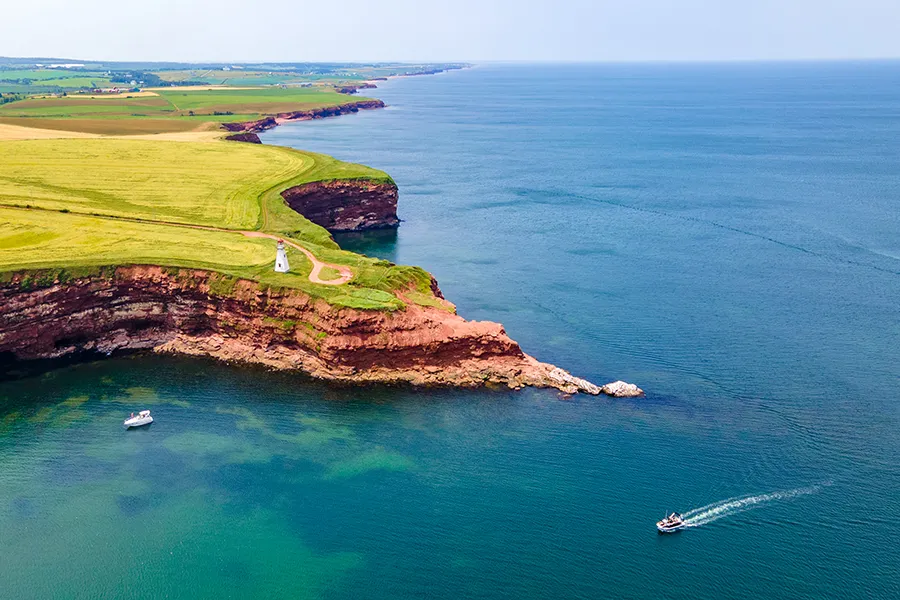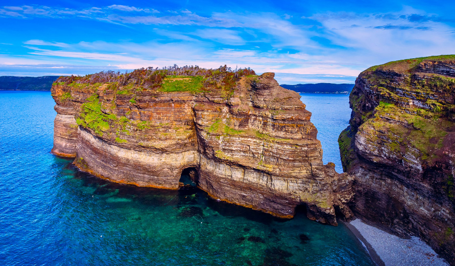 We head North through main and stop for fuel one last time int he states at the Northernmost airport in Maine. Entering New Brunswick Canada, we are officially on our way towards the first big destination, AntiCosti Island. We fly low along the beaches of the “Graveyard Of The Gulf”, named for the 400+ ships that have run aground and sunk here. Keep your eyes sharp for Bald Eagles as this is a popular nesting location for them. As we turn inland to fly around some canyons to spot Vauréal Falls, an incredible 250′ high waterfall. Next we fly along the limestone cliffs at Baie de la Tour and admire the beautiful turquoise waters. Our day ends at Gite du Copaco, a 7 room B&B right on the island.